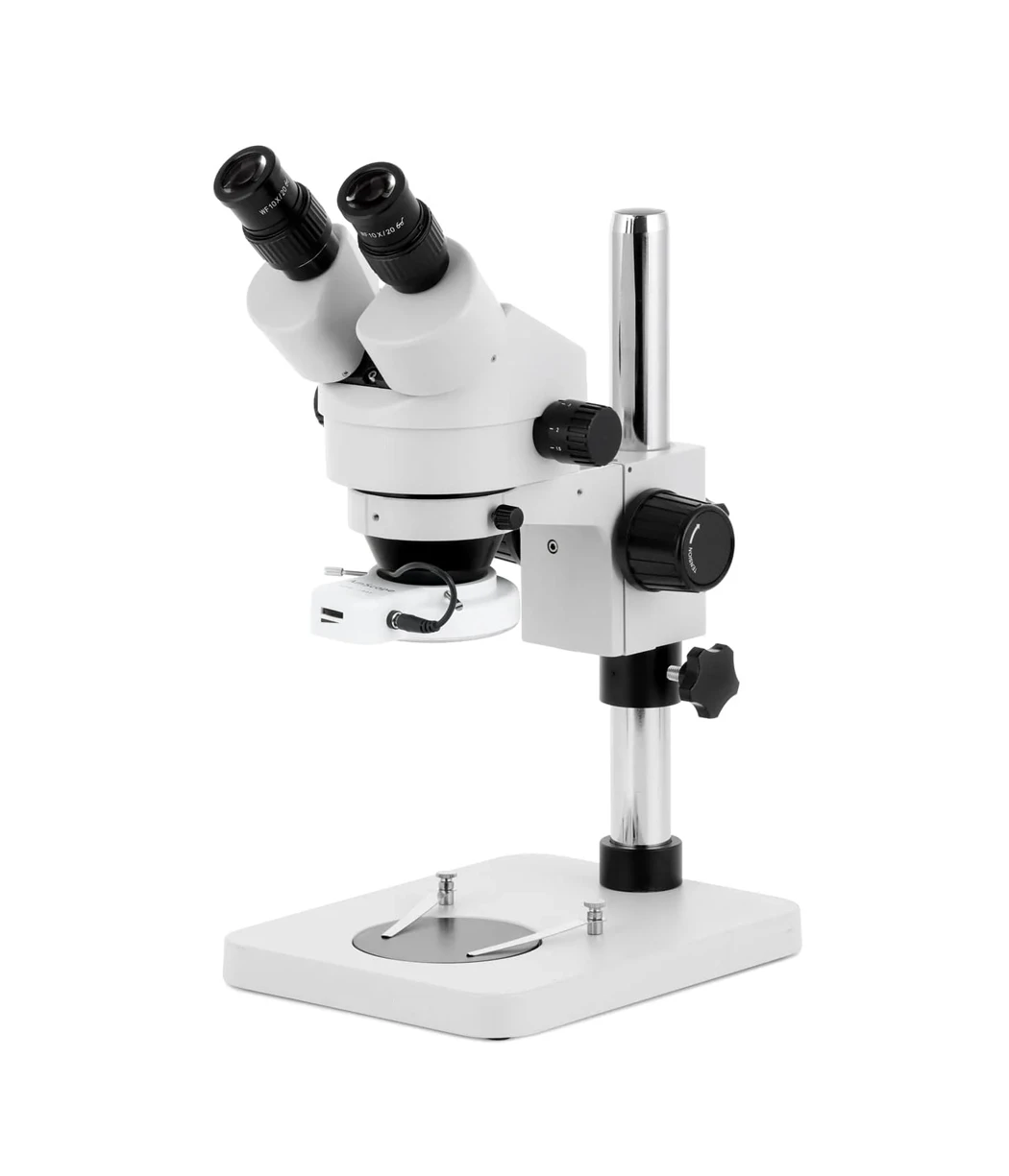 With a 7X–45X continuous zoom magnification range, this stereo microscope enables smooth transitions from low-power overview to high-detail inspection without refocusing. High-quality optical components deliver sharp, high-contrast images with true three-dimensional clarity.